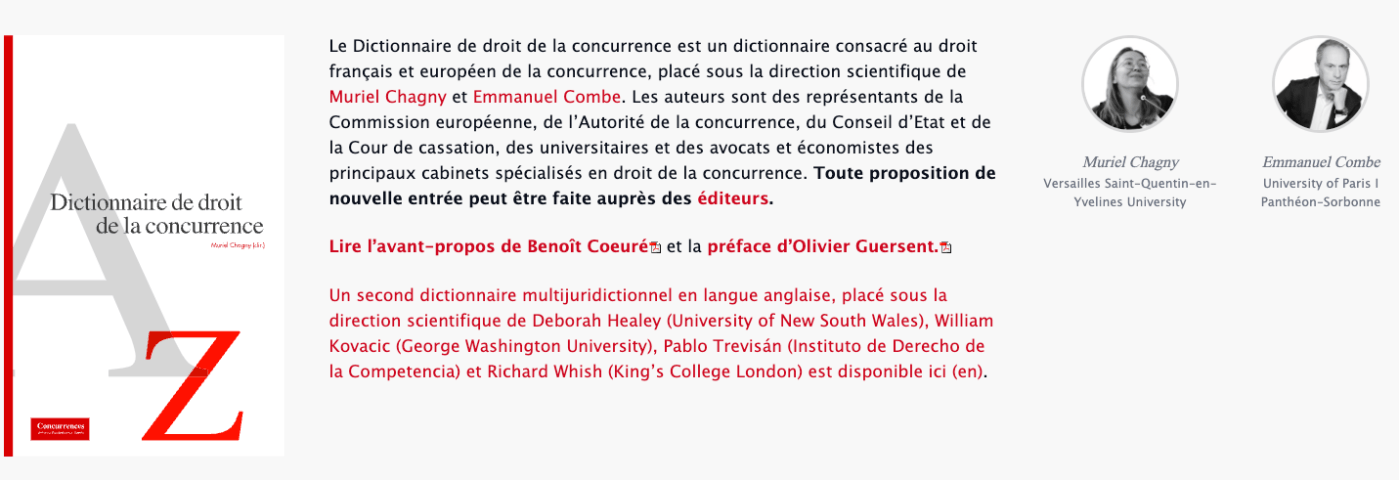 J’ai eu le plaisir de rejoindre la liste des auteurs du Dictionnaire de droit de la concurrence publié en France par l’éditeur Concurrences.