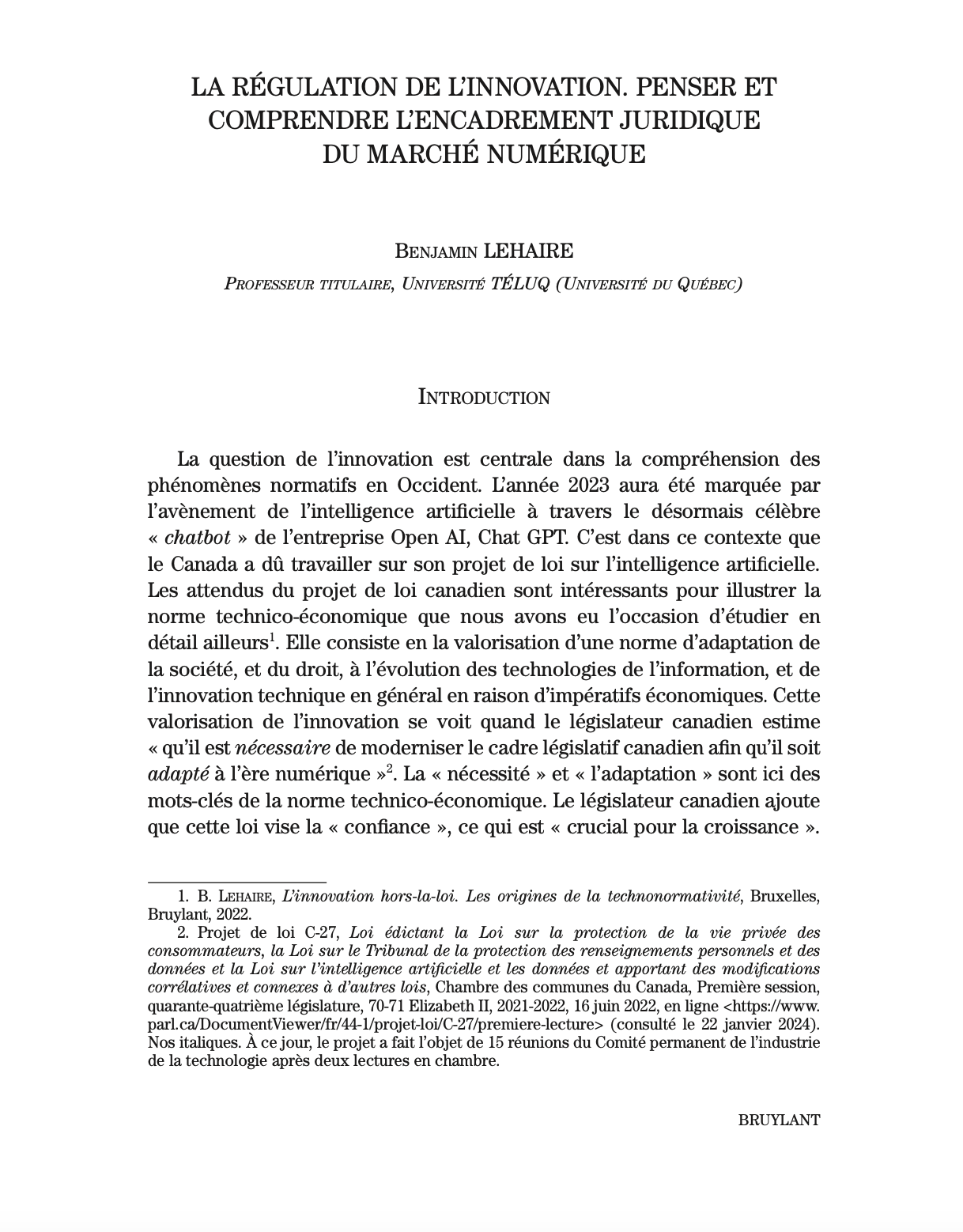 Je suis honorĂ© d’annoncer la parution de mon chapitre intitulé « RĂ©gulation des innovations. penser et comprendre l’encadrement juridique du marchĂ© numĂ©rique »Â dans l’ouvrage collectif « Les rĂ©gulations europĂ©ennes du numĂ©rique et le droit du marchĂ© », sous la direction de Linda Arcelin.